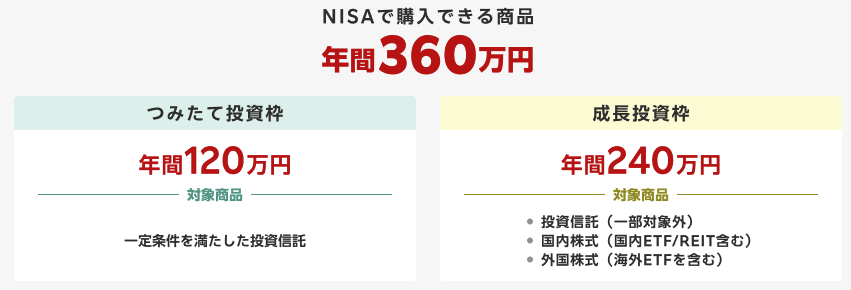 つみたて投資枠 | 120万円 | 金融庁基準の投資信託 | 低コストで長期積立に適した商品 |
