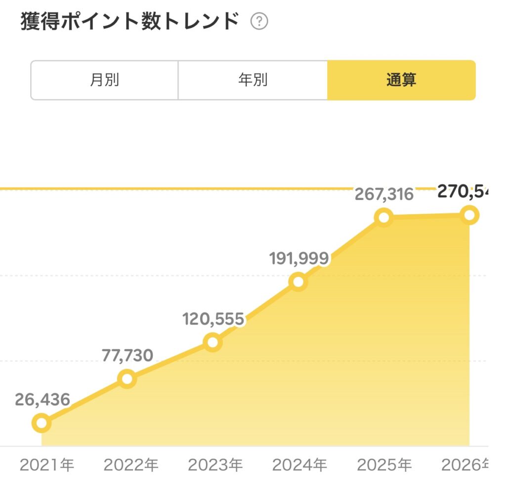 わずか4年間で累計26万ポイント以上を獲得することができました。